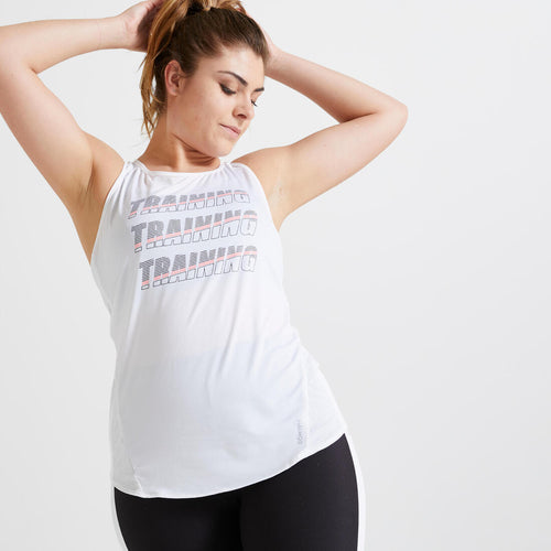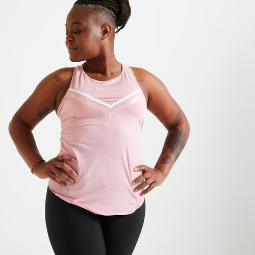 DOMYOS T-shirt ample Col rond Fitness Cardio Femme Gris chiné et