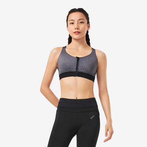 DOMYOS Brassière zippée avec coques maintien fort Femme