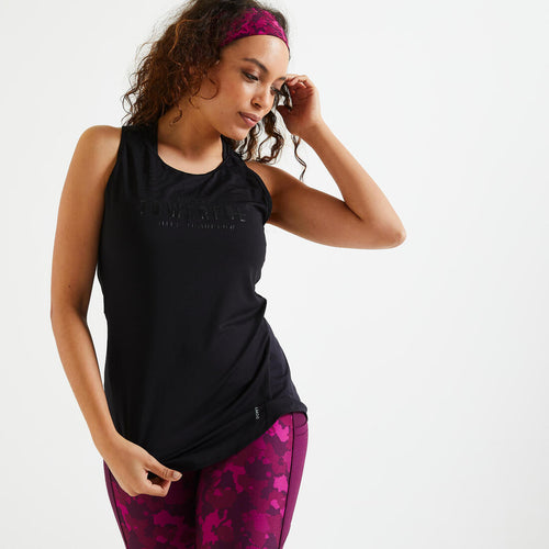 DOMYOS Corsaire de fitness extensible femme, noir fumé