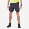Short 2 en 1 de running Homme - KIPRUN Run 500 Confort Gris carbone