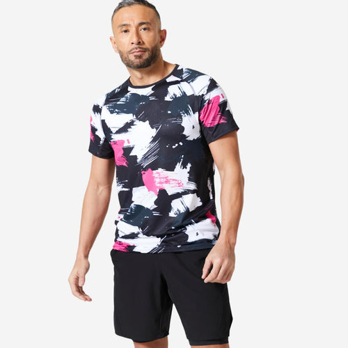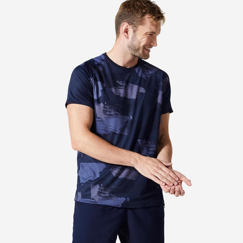 DOMYOS T-shirt de fitness essentiel respirant col rond homme - aop