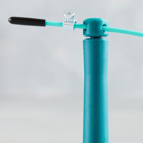 Pour bien utiliser la corde à sauter rapide, placez vos pieds au milieu et remontez-la jusqu\'à vos épaules. Les poignées doivent arriver à vos aisselles. Réglez la longueur et serrez bien les deux vis avec l\'outil fourni pour qu\'elle soit bien fixée. Pour regarder notre tuto vidéo : https://support.decathlon.fr/corde-a-sauter-vitesse