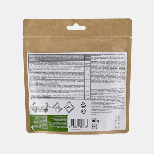 Repas lyophilisé végétarien et bio - semoule aux légumes - 100 g