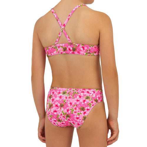 Maillot 2 pièces fleuri surf bretelles croisées fille