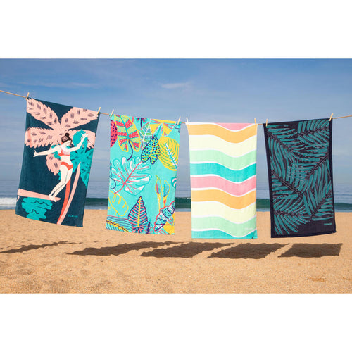 Idéale pour la plage, la piscine ou les autres activités aquatiques, cette grande serviette de bain aux imprimés colorés vous accompagnera partout.