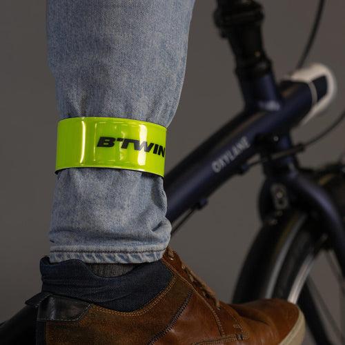 Soyez visible à vélo en un seul geste ! Enroulez le brassard de visibilité en 1 seconde autour du bras ou de la cheville.