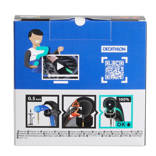 Chambre à air 26 pouces auto réparante valve Schrader. Le liquide préventif à l'intérieur de la chambre à air répare instantanément les crevaisons.