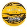 Le ballon de basket Tarmak R500 est parfait pour débuter. Sa prise en main du ballon est facilitée par le design creusé des channels et le grain obtenu sur l\'enveloppe extérieure du ballon. En caoutchouc moussé (injection d\'air dans le caoutchouc qui lui donne une consistance plus moelleuse), le contact avec le ballon est moins dur. Son enroulement filamentaire composé à 100% polyester lui garantit une bonne qualité de rebond. Très résistant, il peut être utilisé en extérieur ou en intérieur.