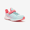 Pour ces chaussures, notre équipe s\'est basée sur les besoins des athlètes en herbe et sur les retours de leurs parents : - Les patins en rubber sur toute la semelle augmentent son adhérence - Le scratch permet à votre enfant de mettre et d\'enlever ses chaussures tout seul - Les lacets et le strap assure à votre enfant un maintien efficace de son pied - Les renforts sur l\'avant et l\'arrière de la tige offrent plus de maintien et de protection à votre enfant