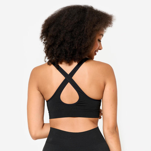 Brassière dos croisé maintien léger Femme, Noir