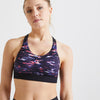 Brassière fitness cardio training femme imprimé blanc et bleu 900