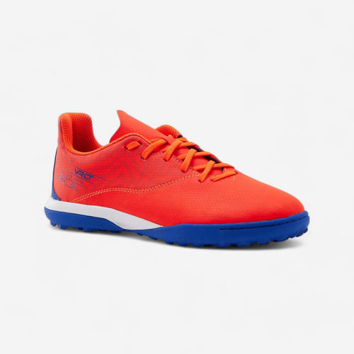 CHAUSSURES DE FOOTBALL ENFANT A LACETS VIRALTO I TURF TF ORANGE ET BLEU