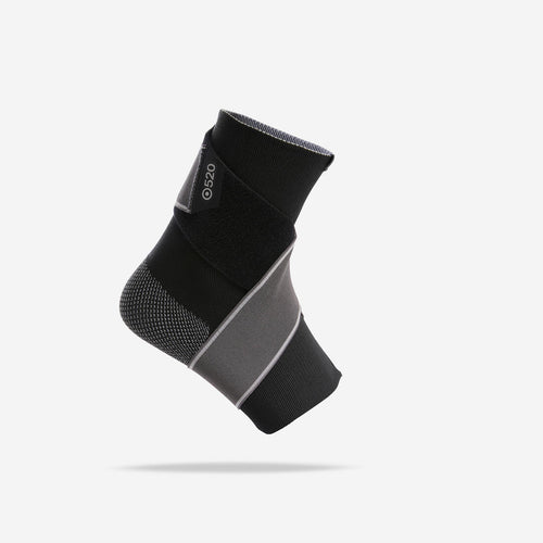 Les chevilles sont une articulation importante. Elles contribuent à notre équilibre, supportent notre poids. Elles peuvent être très sollicitées notamment dans les sports à impacts Cette chevillière maintient et stabilise votre cheville pendant le sport. Facile à enfiler et à serrer, il suffit de suivre le chemin tracé dans le tricot. Un strap vous permet d\'ajuster le renfort souhaité. Sa matière aérée et sa forme adaptée à l\'anatomie de la cheville vous garantiront un meilleur confort.