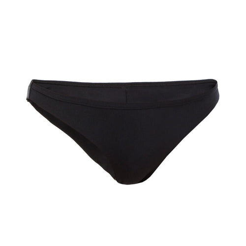 Ce bas de maillot de bain de type tanga dégage bien les fesses et allonge visuellement les jambes. Son bord élastiqué à la taille lui donne une bonne tenue dans les petites vagues.