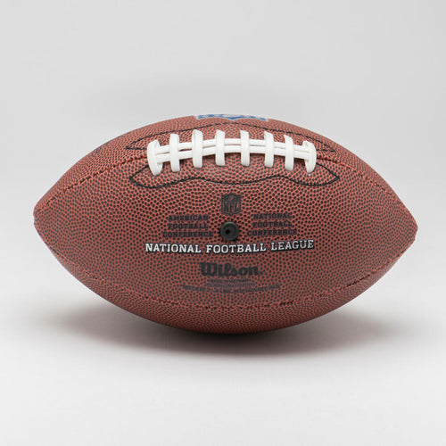Ballon synthétique effet cuir marron Wilson The Duke à l'effigie de Wellington Mara, pionnier du sport et surnommé "The Duke" par ses pairs.