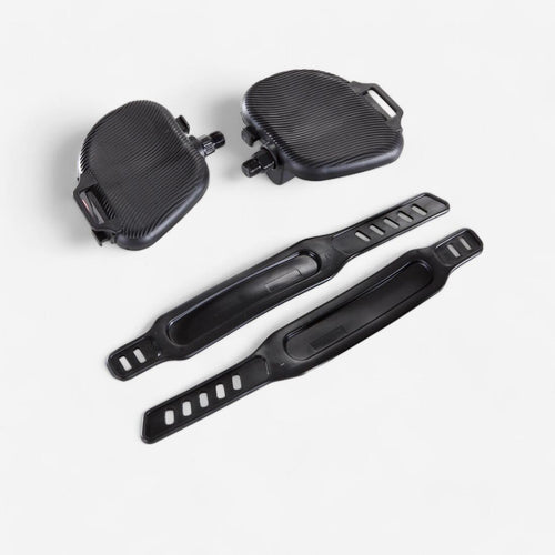 Ces pédales sont adaptables sur un pédalier standard (diamètre de filetage : 14 mm). Paire de pédales fournies avec les sangles.