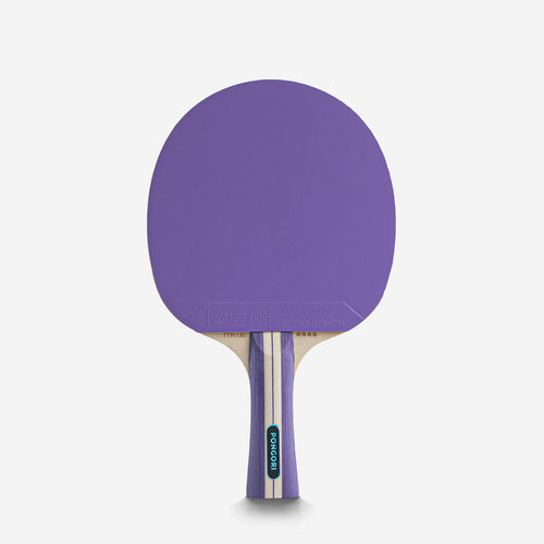 A photo of the SET 2 RAQUETTES TTR 130 SPIN 4* ITTF ÉCOLE/CLUB VIOLET/BLEU + BALLES in use