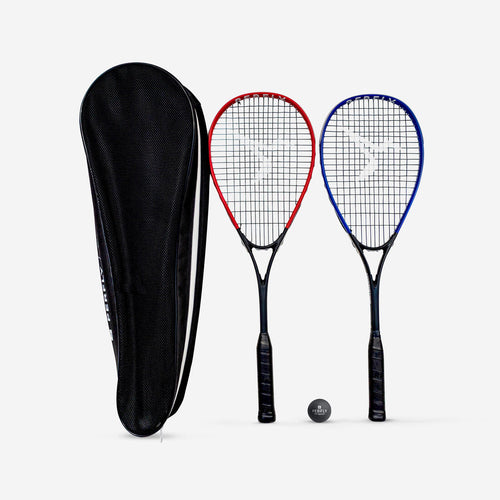 Ce set de raquettes de Squash est parfait pour l'apprentissage à 2 du Squash. Prêt à l'emploi, vous pouvez l'utiliser en famille ou entre amis avec ses 2 raquettes, sa balle point rouge et sa housse.