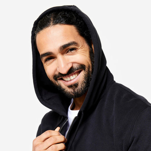 Sweat zippé à capuche de fitness en molleton homme, noir
